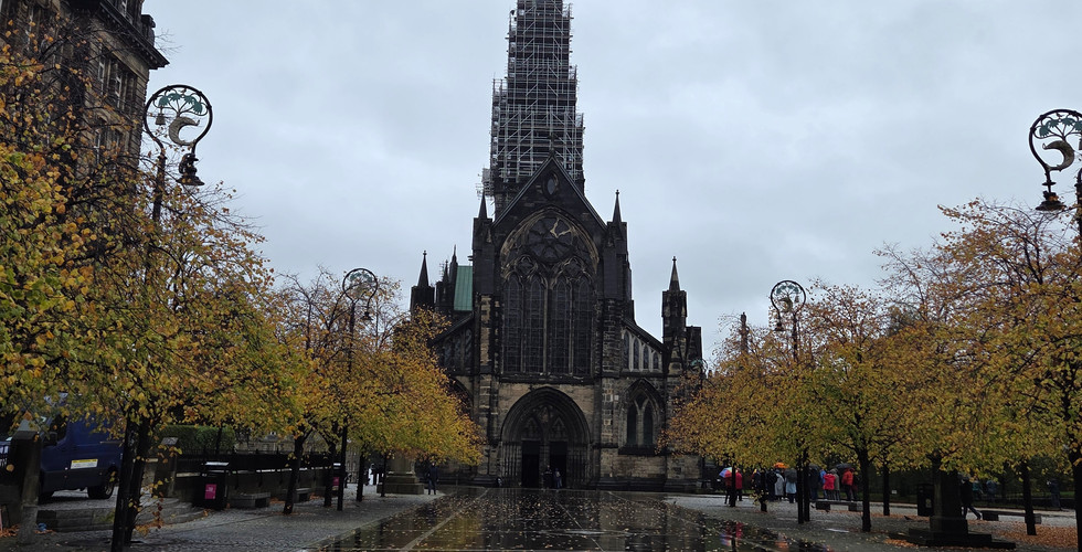 The next morning we set out for Glasgow Cathedral in quintessentially Scottish weather--we were both soaked to the bone when we arrived, but were able to dry off during our visit. The pre-Reformation Cathedral is a rare gem, and the volunteers do an amazing job explaining the history of the site, including the grave of St. Mungo, who is said to have created a place of worship on the very site of the Cathedral way back in the 7th century. After the cathedral we walked up to the Necropolis behind the church, which was created in 1832 after several population booms in the city. Between the rain, Victorian graves, and gothic architecture of the city, this was the perfect way to ring in October. From here we walked through more rain into the city center, passing several huddled masses of students taking shelter under the doors to university buildings, and several more toughing it out with nothing more than a T-shirt to keep them warm. After stopping for a quick lunch of the Glaswegian specialty Pizza Crunch (aka deep-friend pizza) with curry sauce, we stopped into the Glasgow Museum of Modern Art to take in some culture before heading to Edinburgh that evening.