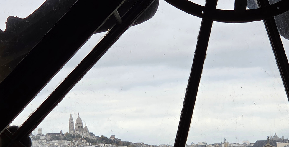Eager to visit at least one full-scale market during our week (despite the fact that I could not do much cooking in our home base), we set out on Tuesday to see the Rue Mouffetard Market. Again, we assembled a picnic as we strolled, this time getting a sample of some classic French cheese (ranging from super stinky to not at all), some charcuterie, a pear, some eclairs, and of course a baguette and a bottle of wine. This day's scenic spot for our picnic lunch was the Luxembourg Gardens, which were in full fall colors. We sat on a bench, from which we could see the central fountain and the Eiffel Tower in the distance, and enjoyed our feast over a leisurely hour and a half. Along the way from the market to the Gardens, we stumbled on a cute square where I noticed several women around my age were taking pictures. As I looked around me, I realized we had stumbled onto the block where Emily in Paris lives! I joined in the picture taking, as I have been re-watching the series on the trains between our stays, and enjoyed the silliness of stumbling on something I wasn't even looking for.
